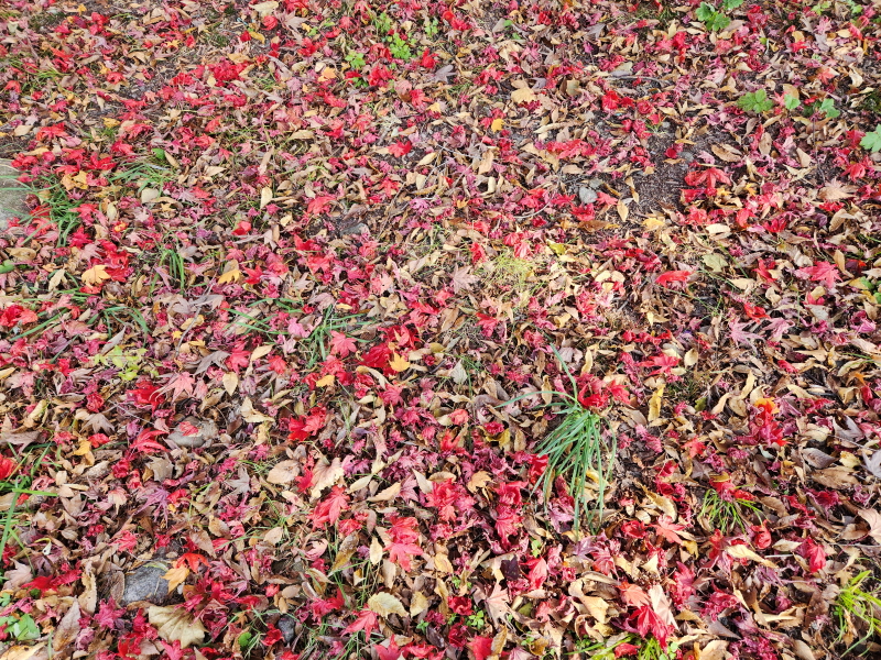 가을은 정말 야위어가고 있었지만 땅 위에 수북이 쌓인 잎들은 제때인 듯 예쁘다.