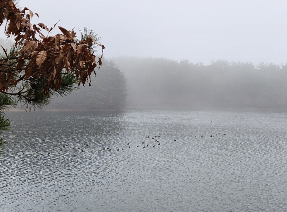 자욱하게 피어오르는 물안개 속 철새들의 움직임은 그대로 풍경이 되어